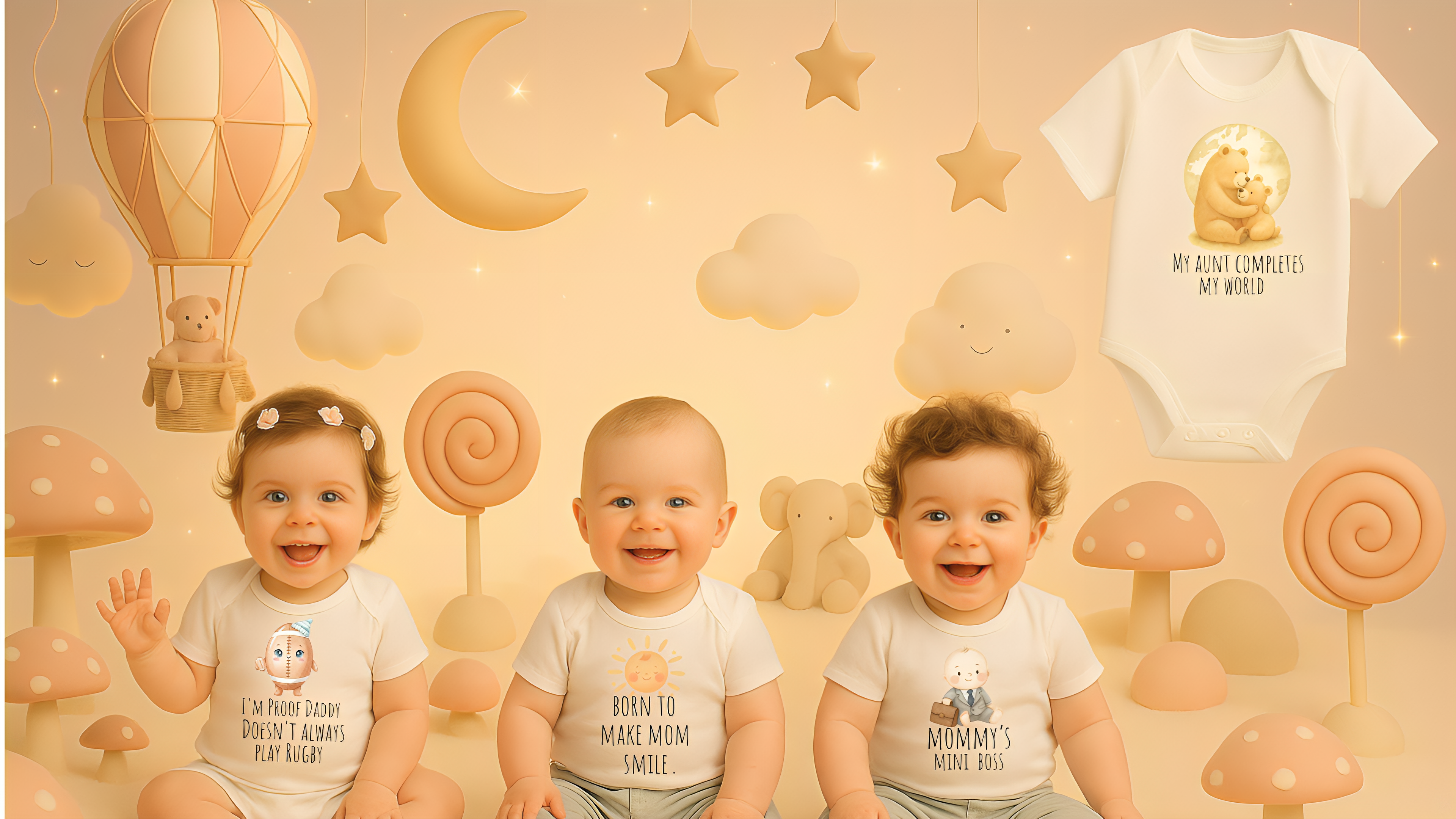 Our adorable, durable cotton onesies and T-shirts are designed for life's messiest, cutest moments.